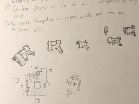 My other work is not a big topic compare to the first one, but a silly animation is dealing with a robbery. The robbery takes place in a gas station on a Halloween night, and there are these two aliens in need of candy. One of the aliens messes up the plan causing them to flee.